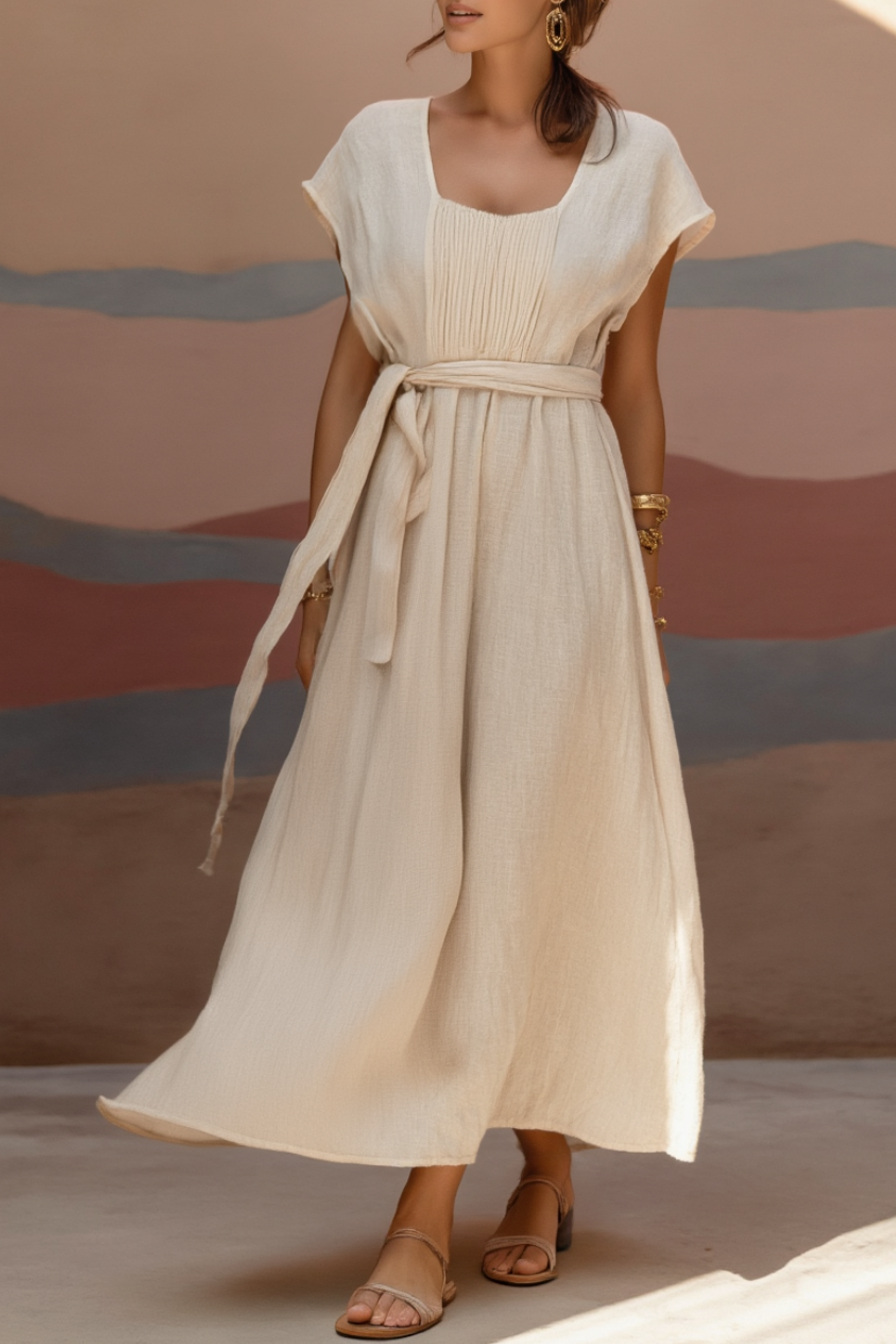 Formal Wedding Guest Dress Beige U Neck Sleeveless Maxi Tiered Dress$175.00 USD$290.00 USD