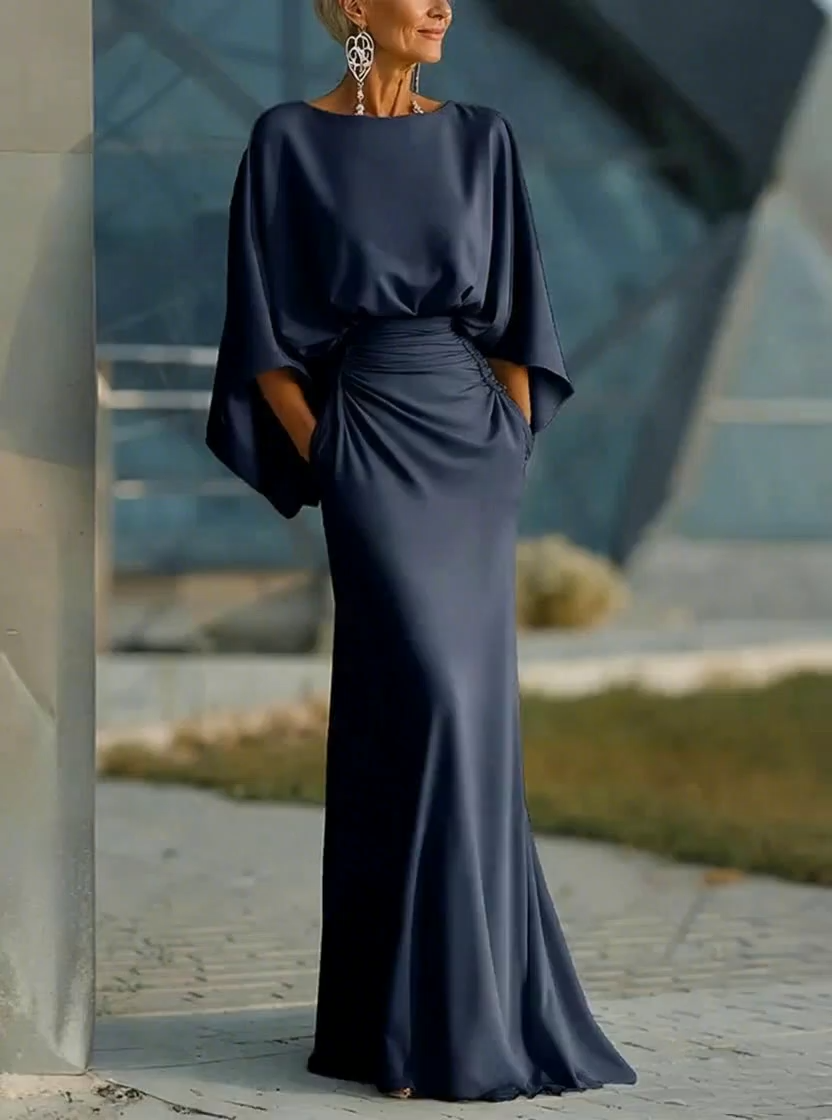 Solid Color Satin Round Neck Maxi Dress