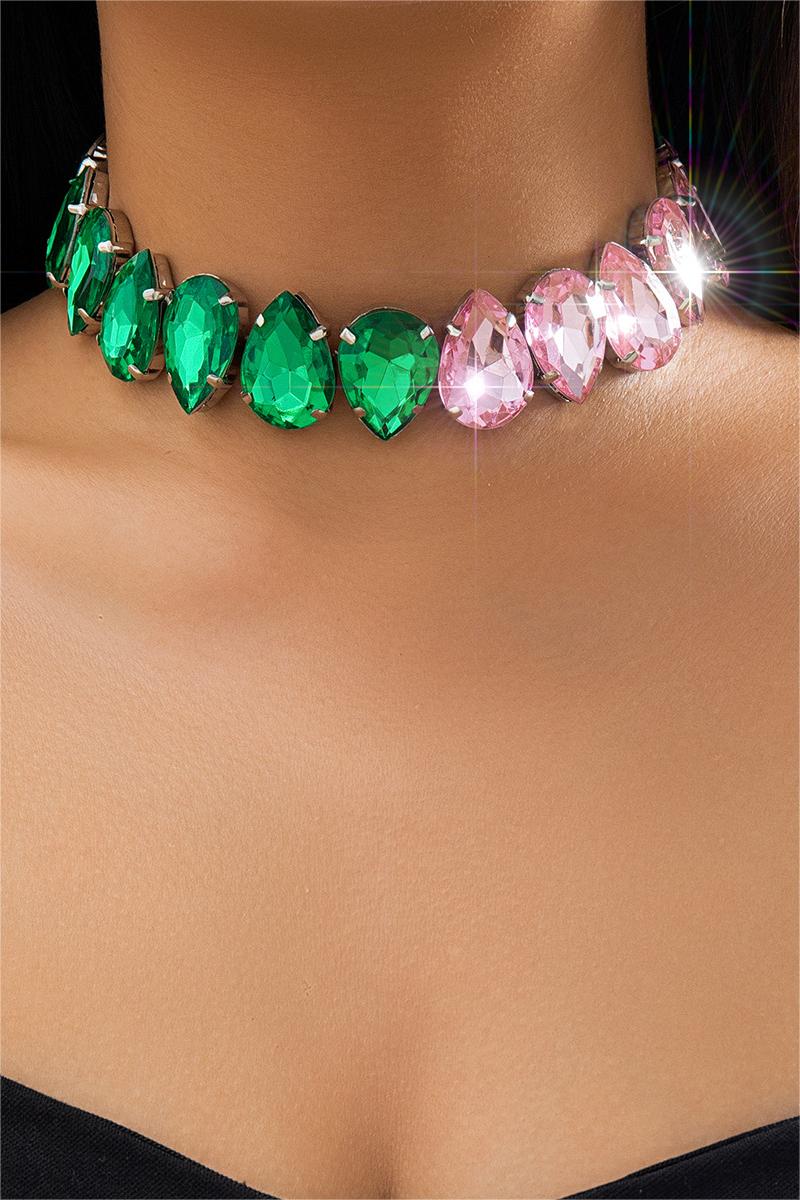 Stud Heart Shape Faux Pink Crystal Necklace